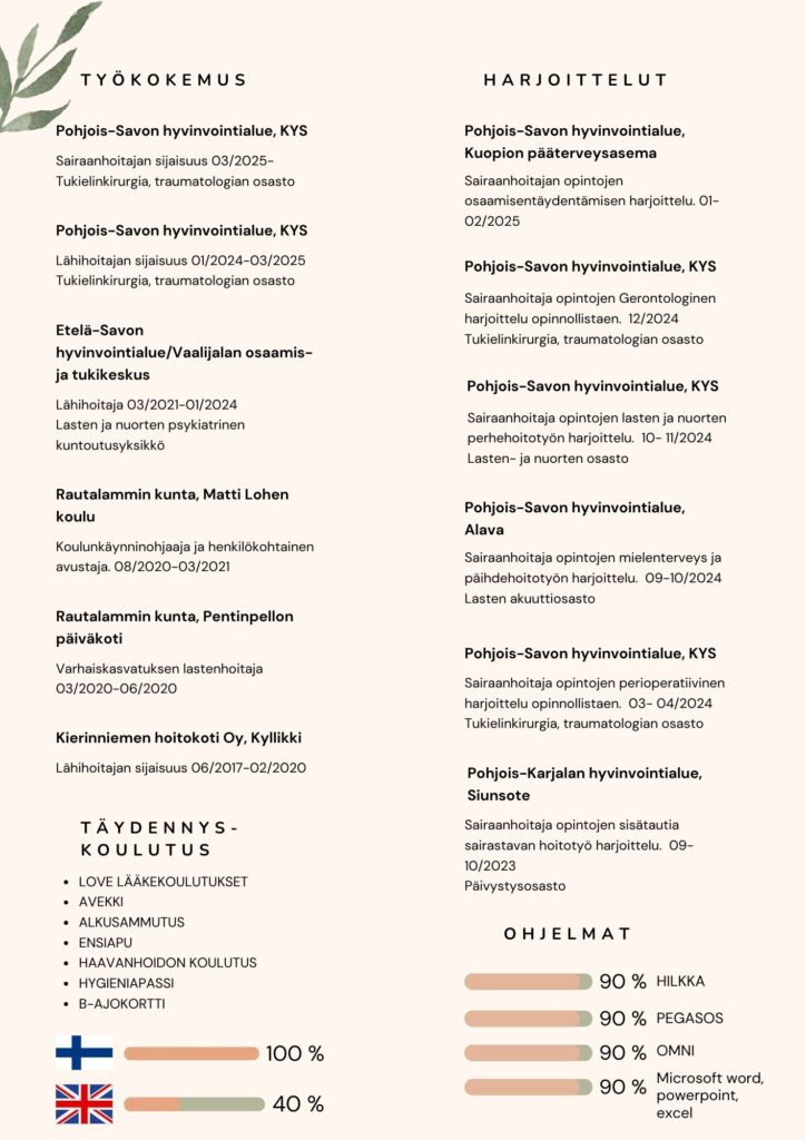 • 6. Harjoittelu: Hoitotyön osaamisen täydentäminen