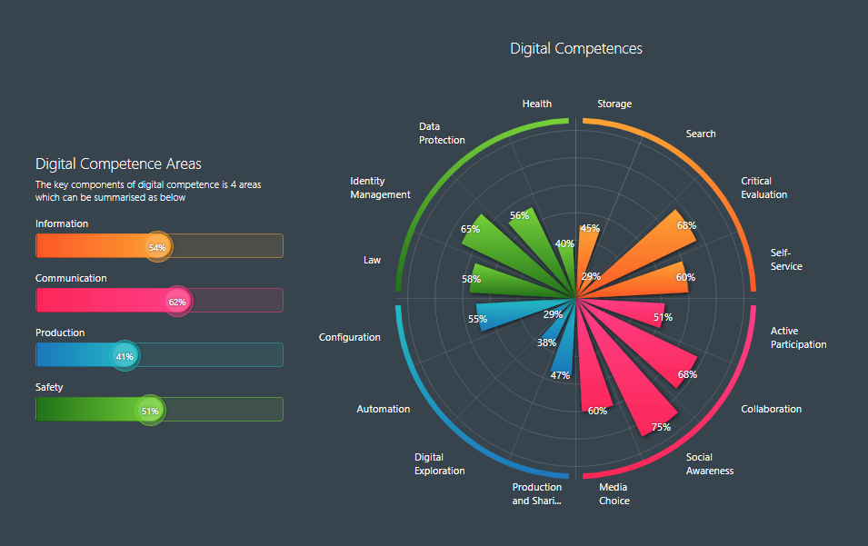 According with the results, I’m strongest at communication and information. I would like to progress at the productions, because that was my lowest prosents.