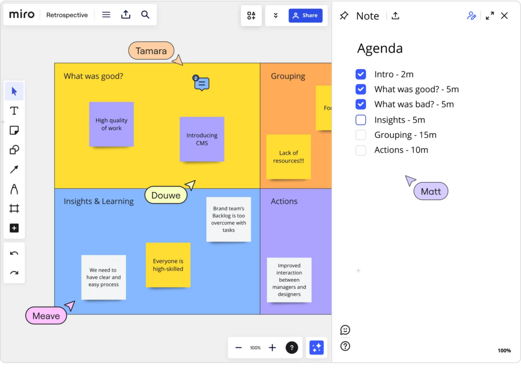 Miro is a digital collaboration platform designed to facilitate team work. I got my first touch with Miro last year, when doing a group assignment for another school course. Even if I can only use the basic features of it, I found it very handy. We used it for workshops or “brain storming” and as a little bit boring engineer, I liked the visual easiness. Perhaps it was a “yellow post-it” way of working, which made me felt like home!