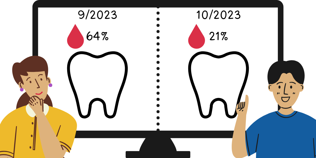Käy hoitotuloksen arviointikäynnin aikana asiakkaan kanssa läpi, mistä ollaan lähdetty liikkeelle ja mihin ollaan hoidon tuloksena päästy. Kartoita, miten tavoitteiden saavuttaminen on onnistunut. Voit havainnollistaa saavutettua hoitotulosta esimerkiksi vertailemalla ensimmäistä ja viimeisintä parodontologista statusta. Konkreettisten kuvien näkeminen voi helpottaa asiakasta ymmärtämään asiaa.