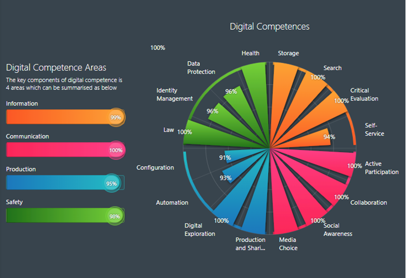 Taking the Digital Competence Test helped me understand my strengths and development areas in a more structured way. The test reflected strong skills in information handling, communication and safety, which matches my professional responsibilities and daily use of digital tools. These strengths have developed over time through continuous exposure to digital services, both in professional HR tasks and in personal life. The test confirmed that I am comfortable navigating digital environments and managing information responsibly.
